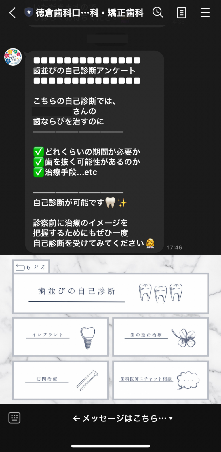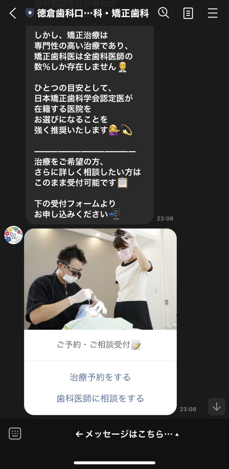 まずは、「LINEオンライン矯正相談」をクリックしていただき、当院のアカウントのお友達登録をお願いいたします。