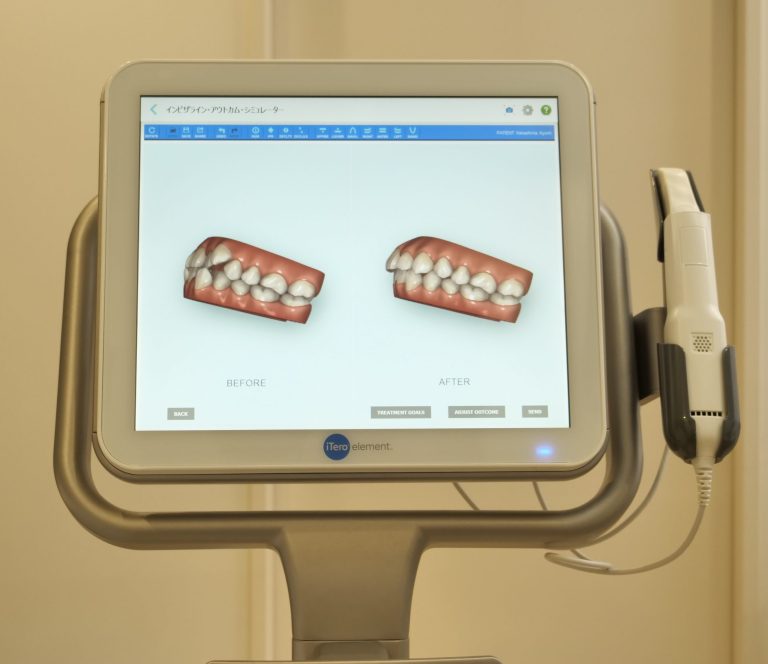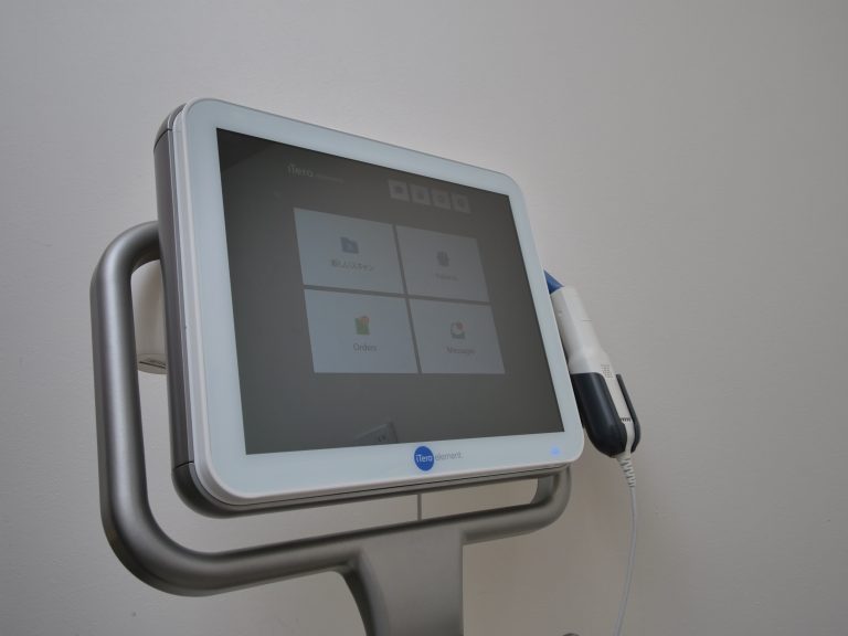 当院では、お口の中を機械でなぞるだけで口腔内データを取得できる3D光学スキャナー「iTero」を導入しております。粘土のような印象材を噛んでいただくことなく、精密な口腔内データを取得できます。患者さまのご負担を抑えつつ、精密かつスムーズに矯正治療を開始できるようになりました。