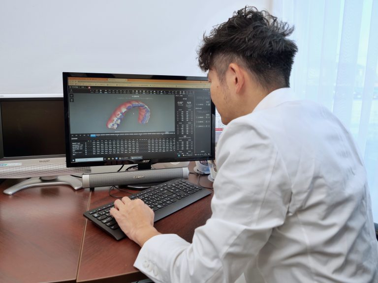 専用ソフトで治療のシミュレーションを行います。歯の動き方や途中経過、治療後の歯並び・噛み合わせをご確認いただけるため、モチベーション維持に繋がります。