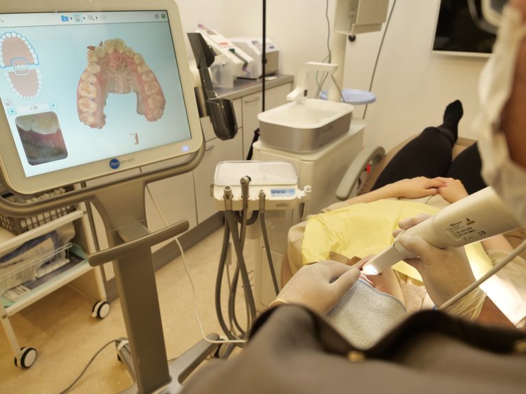 マウスピース型矯正歯科装置を適用する際は、歯型の採取が必要です。しかし、従来の歯型採りは、粘土のような印象材を噛む必要があるため、患者さまにご負担をおかけしてしまいます。そこで当院では、口の中をなぞるだけで正確に歯型データを取得できる3D口腔スキャナーを導入しております。
